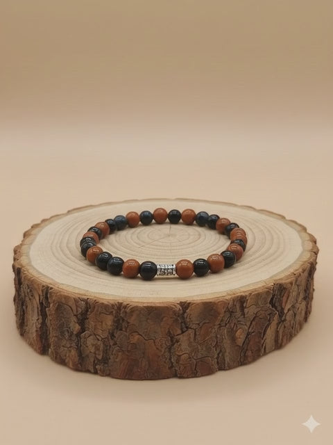 Bracelet bois de santal et jaspe rouge 17-18 cm